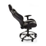 長時間のプレイでも体に負担をかけない柔らかな座面とリクライニング可能な背もたれを持ち、アームレストは上下左右に動かせるので、肘をベストなポジションに配置できます。
